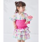 浴衣 「簡単着付け」ガールズ フリル フレア甚平 簡単帯セット キッズ 子供 女の子