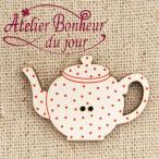 フランス製 木製ボタン 2つ穴 (ティーポット×赤い水玉) アトリエ・ボヌール・ドゥ・ジュール オシャレ