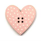 フランス製 木製ボタン 4つ穴 (ハート×ピンクドット) アトリエ・ボヌール・ドゥ・ジュール