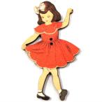 フランス製 木製ボタン 2つ穴 (赤いドット柄ワンピースの女の子) アトリエ・ボヌール・ドゥ・ジュール オシャレ