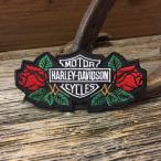 送料無料 ハーレー ロゴ & バラ 刺繍 ワッペン ◆ B&S Harley HD パッチ 赤い薔薇 花 CAWP43