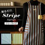エプロン レディース カフェエプロン ストライプ 大人 女性 ロング アウトドア キャンプ フリーサイズ
