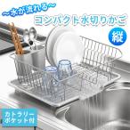 縦 コンパクト水切りかご 水切りラック スリム トレー付き カトラリーポケット付き