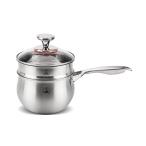【吉冨士工芸】アルミミルクパン 17cm 蒸し器付き ガス火・IH対応 内面フッ素加工 三層鋼仕様 強化ガラス蓋 片手鍋 蒸し料理対応 お手入れ簡単