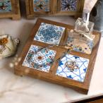 鍋敷き スクエア ボヘミアンタイル 木製 陶器 ハンドメイド