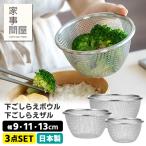 家事問屋 下ごしらえザル 3点セット (9 11 13 脚付き コンパクト 小型 燕三条 日本製 ステンレス製)