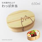 曲げわっぱ 弁当箱 小判 ナチュラル ねこ 日本国内仕上げ 650ml
