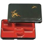 弁当箱 8.5寸 布目千筋松花堂弁当箱 黒渕朱(内塗無) 正方形 仕切別 樹脂製 f8-701-11