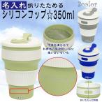 送料無料 名入れ シリコン コップ 折りたたみ 保冷剤 弁当 コンパクト フタつき 耐熱 350ml 名前入り アウトドア 旅行 グリーン-名入れ(全3色)350mlcm