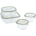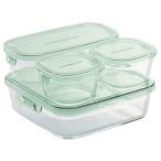 iwaki(イワキ) 耐熱ガラス 保存容器 オリーブグリーン 角型 4点セット パック&レンジ PC-PRN4G41