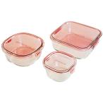 iwaki(イワキ) 耐熱ガラス 保存容器 ピンク 角型 3個セット パック&レンジ PS-PRN-3P1