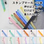 ペン先がスタンプのマーカーペン12色セット。押せば模様、引けば線。 セット スタンプ ペン 蛍光ペン かわいい おしゃれ カラーペン 水性 2way