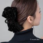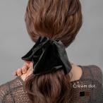 【全品送料無料⇒12月7日23:59迄】バンスクリップ ヘアクリップ リボン ベロア ドットビジュー 大きめ ヘアアクセ ヘアアレンジ 簡単 しっかり留まる
