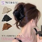 トライアングル ヘアクリップ バンスクリップ 髪留め まとめ髪 レディース 大人 サテン 光沢 きれいめ シンプル 韓国風 ホールド ハーフアップ ローポニー