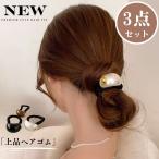 ヘアゴム 大人っぽい 3点セット ヘアアクセサリー おしゃれ 大人 跡がつかない 痛くない 髪ゴム 簡単 上品 オフィス 結婚式 レディース 黒 ブラック