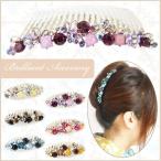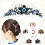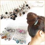 【ゆうパケット送料250円】夜会巻きコーム/ヘアコーム 煌めき 花 ラインストーン エレガント 夜会巻き cb88☆白/黒/茶/ピンク/紫/エメラルド