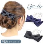 【ゆうパケット送料250円】特許取得!夜会巻きコーム/ヘアコーム/コーム/モアコームボーテ 上品リボン mcbe27 紺/黒