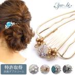 【ゆうパケット送料250円】夜会巻きコーム/ヘアコーム/コーム/ 大粒花つるパール&ラインストーン cb2☆シルバー/ゴールド