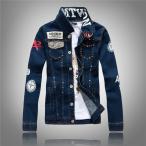 デニムジャケット メンズ オリーブ おしゃれ ワッペン付き Gジャン ジャケット メンズ 長袖 スリム カジュアル マーク