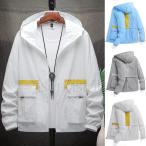マウンテンパーカー メンズ ジャケット UVカット 薄手 夏物 フード付き ジップアップ 長袖 カジュアル ライトアウター 紫外線対策 アウトドア トップス
