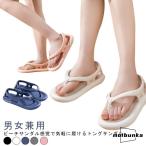 柔らかい ビーチサンダル かかと付き トングサンダル 滑りにくい カジュアルシューズ トングサンダル 滑り止め 靴 メンズ 男女兼用 厚底 ストラップ