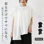 カットソー レディース 半袖 tシャツ 白 黒 体型カバー 個性的 アシンメトリー ゆったり 無地 ワイド 春 夏 シンプル トップス 着回し おしゃれ