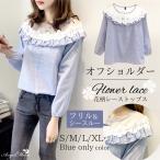 オフショルダー トップス 長袖 花 フリル ストライプ シャツ 肩出し プルオーバー