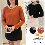 カットソー レディース ビジュー パール きれいめ エレガント カジュアル