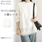 「ふんわり柔らか」 綿100% ロンT カットソー レイヤード 重ね着 裾レース 長袖Tシャツ レディース シンプル トップス 長袖 春 夏 秋 綿 スイモク