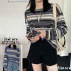 レディース Tシャツ 長袖Tシャツ 長袖 ロンT トップス カットソー クルーネック ボーダー 春 秋 体型カバー 大きめ かわいい ビッグTシャツ