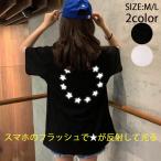 Tシャツ トップス レディース クルーネック プリント 半袖 夏 春 ビッグ 大きめ 光る 映え 反射プリント ゆったり かわいい