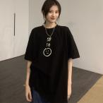 tシャツ Tシャツ レディース 半袖 カットソー 綿 BIGサイズ 大きめ ゆったり 体型カバー プリント ロング丈 夏 黒 白 ハート Y2K ルーズフィット