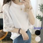 Tシャツ レディース 40代 50代 カットソー 半袖 綿 レース ゆったり 大きめ オーバーブラウス 夏 上品 きれいめ ルーズフィット 体型カバー