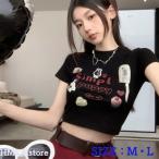 レディース Tシャツ tシャツ 半袖 トップス クロップド ショート丈 プリント カットソー 夏 春 かわいい Y2K 短め インナー