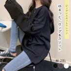 即納 ロンT Tシャツ オーバーサイズ 長袖 チュニック 無地 スリット 体型カバー 薄手