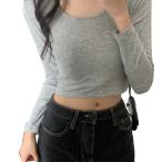 即納 ロンT Tシャツ ショート丈 クロップド 長袖 ラウンドネック 脚長効果 薄手 無地