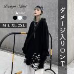 即納 ロンT オーバーサイズ ビッグシルエット ロング Tシャツ トップス 長袖 ダメージ クルーネック ヒップホップ ストリート レイヤード 無地