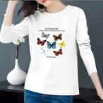 在庫処理 即納 30%off レディース ロング Tシャツ 長袖 七分袖 リラックス ゆったり 大きめ 蝶 プリント 長袖 カットソー トップス カジュアル ¥1380→¥960