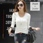 長袖カットソー 長袖 レディース ロンT Uネック ラウンドネック Vネック 無地 トップス インナー Tシャツ シンプル スリム ブラック ホワイト