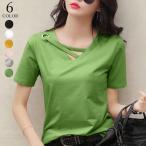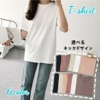 Tシャツ カットソー 半袖 レディース トップス ラウンドネック Vネック プルオーバー 無地 ソリッドカラー 婦人服 カジュアル 定番 着回し ラフ