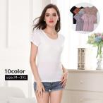 半袖Tシャツ レディース 婦人服 カットソー トップス ラウンドネック シンプル 無地 ショート丈 丈短め カジュアル おしゃれ