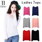 カットソー レディース 女性 婦人 トップス 長袖 丸首 ラウンドネック 無地 単色 薄手 シンプル 着回し 重ね着 カラバリ豊富 お洒落