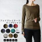 長袖カットソー ロングTシャツ レディース 女性 トップス ボートネック 指穴付き 重ね着風 フェイクレイヤード シンプル お洒落 可愛い お出かけシ