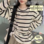ロンT レディース ボーダー マルチボーダー カットソー オーバーサイズ 大きいサイズ ゆったり ロング 秋 冬 カジュアル 韓国 長袖 グレー 黒 爆買
