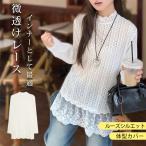 【2点20%OFF】シースルー カットソー 重ね着 インナー 透け感 2タイプ 春秋冬 ニット タートルネック あったか レディース 長袖 トップス フリルネック 爆買
