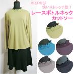 ボトルネック ハイネック 長袖 カットソー レース ストレッチ 伸縮性 のびる 光沢 薄手 グリーン ブルー ワイン グレー ブラック