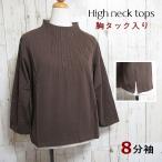 レディース カットソー トップス ボトルネック 8分袖 ストレッチ 伸縮性 のびる ドレープ グレー ベージュ パープル 薄手 サラサラ ひんやり 花柄