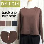 カットソー 後ろファスナー ブラウン レディース 長袖 トップス きれいめ オフィスカジュアル Drill Girl C00663 送料無料