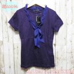 カットソー レディース 半袖 トップス Tシャツ リボン ラベンダー レース 紫 パープル シンプル ベーシック 綿100%