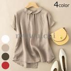 襟付きブラウス バックボタン 半袖 襟付き ブラウス トップス レディース 春 夏